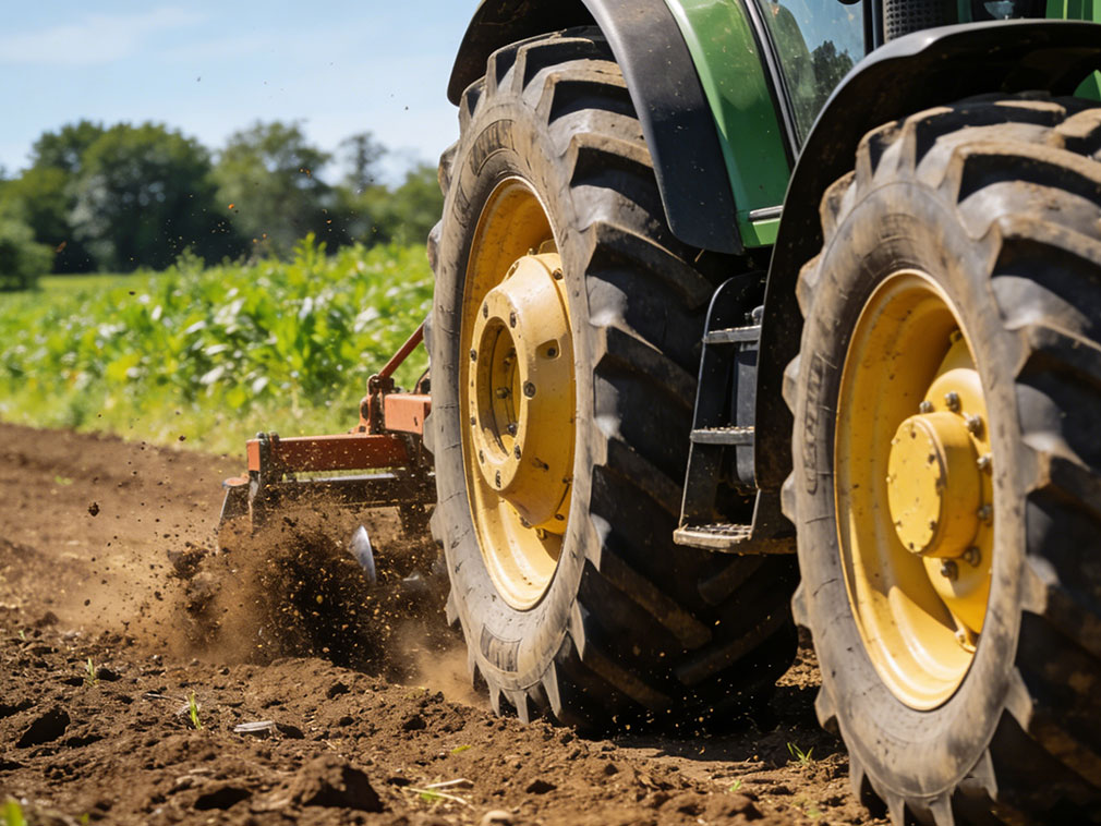 The specifications of bias-ply tires are commonly indicated by markings such as "23.1-26," where the "-" indicates a bias-ply structure, distinguishing it from the "R" marking of radial tires. Agricultural tires mainly include rear-wheel drive tires, guide tires, and tiller tires, with radial construction currently being the mainstream. Rear-wheel drive tires have extremely deep treads to provide strong traction; tiller tires have wider tread spacing to effectively prevent mud adhesion and are widely used in tractors, harvesters, and other agricultural machinery.