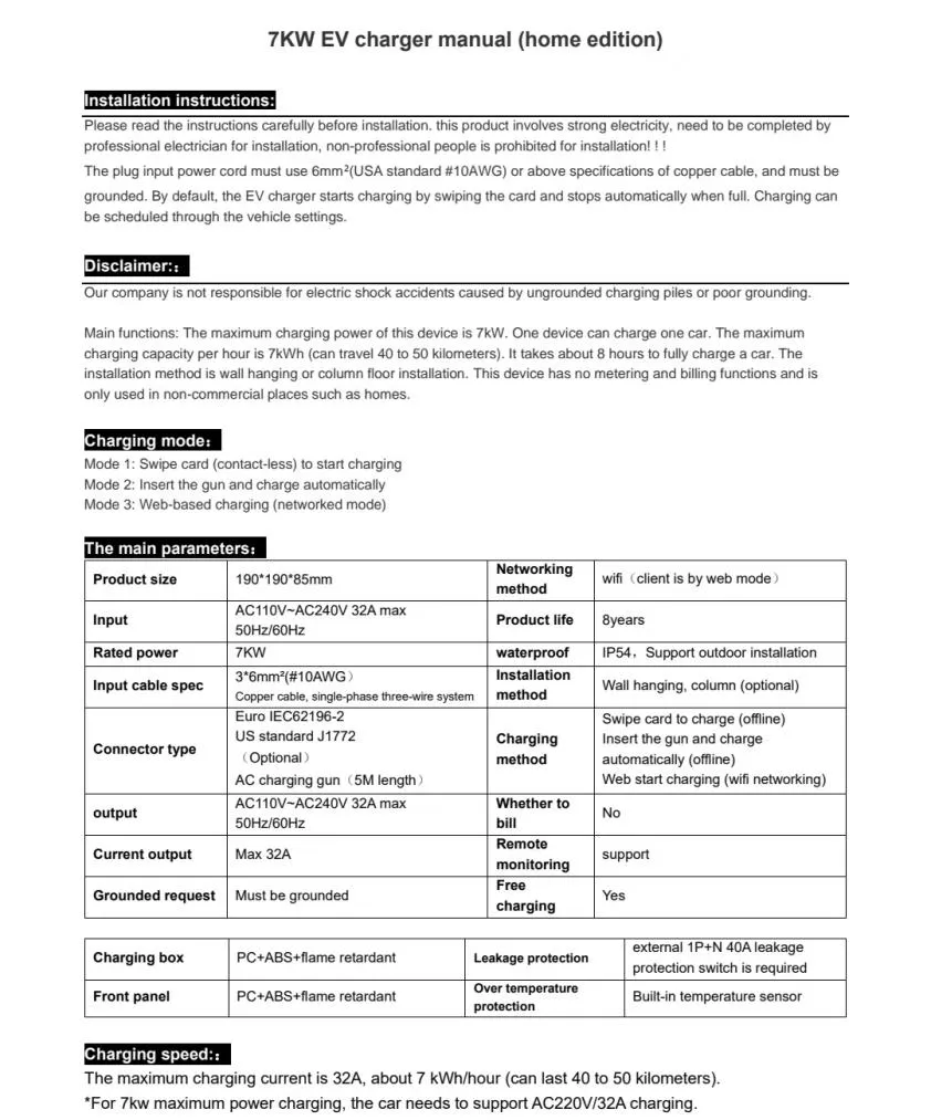 7KW car charging pile