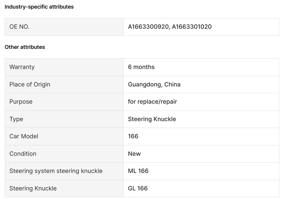 High-quality steering knuckle for Mercedes-Benz GLE, compatible with part numbers 1663300920 and A1663301020. Durable and reliable replacement part designed for optimal vehicle performance.