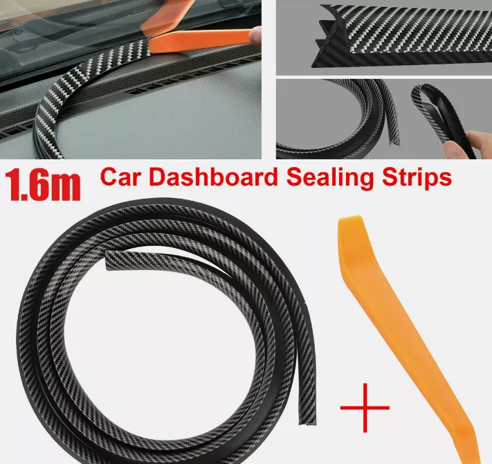 Carbon Fiber Car Dashboard Windshield Gap Sealing Strip Rubber Auto Accessories