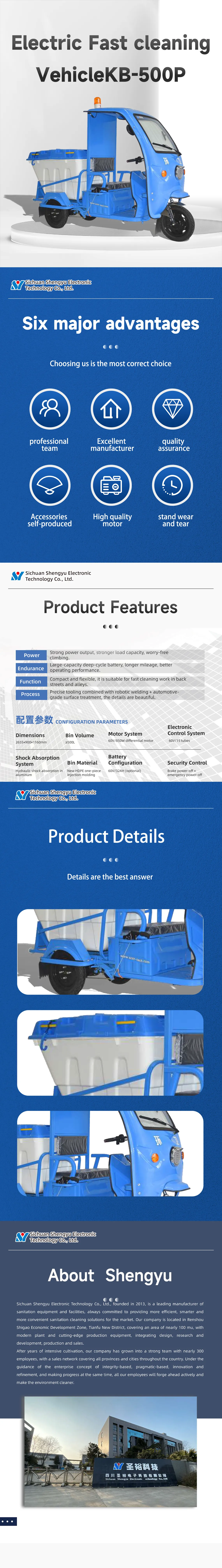The Electric Fast Cleaning Vehicle KB-500P offers efficient, eco-friendly cleaning solutions for urban areas. Ideal for public spaces, this compact vehicle ensures thorough cleanliness with minimal noise and emissions.