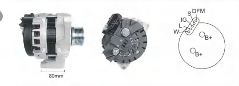 Voltage: 28V Current: 80A Foot Opening: Left Oblique / Single Hanging 80mm Pulley: 6PK60/10PK254 Applicable supporting model range: Weichai WP9H, WP10.5, Howo TX