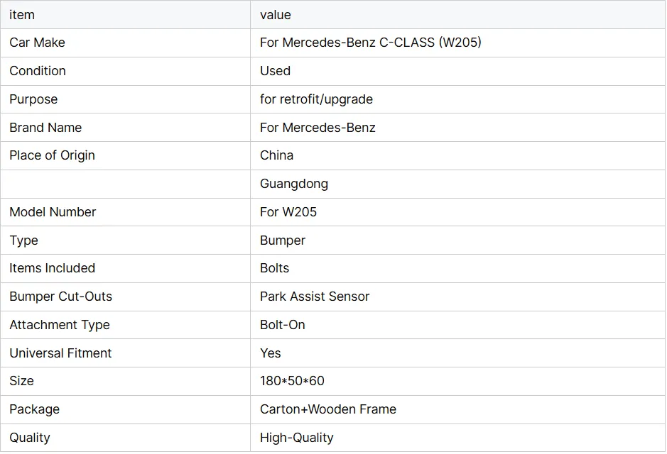 Upgrade your Mercedes Benz C-class W205 with our high-quality body kit. Includes front bumper grille and bumper bolts. Perfect fit for C200, C300 models. Enhance style and performance effortlessly.