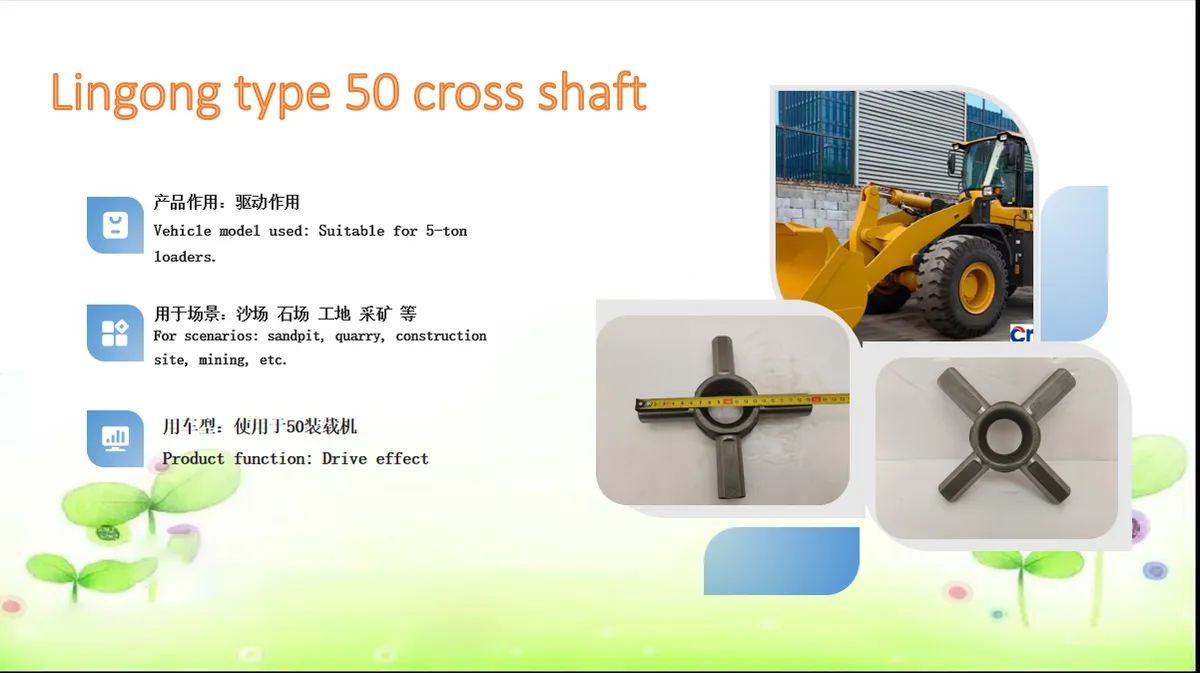 The Loader Lingong type 50 cross shaft is a crucial component for efficient drive systems, ensuring optimal performance, durability, and reliability in heavy machinery operations. Ideal for enhancing loader functionality.