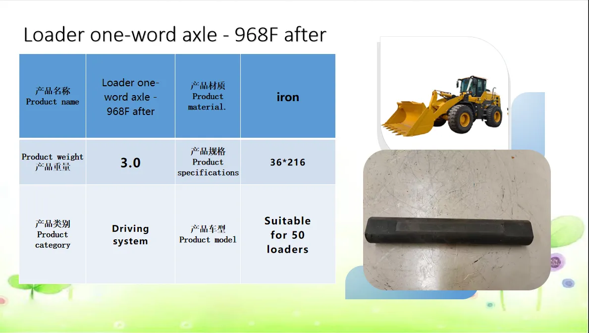 The Loader one-word axle for 968F is a high-performance drive system component, enhancing durability and efficiency. Ideal for heavy-duty operations, it ensures optimal power transmission and reliability in demanding environments.