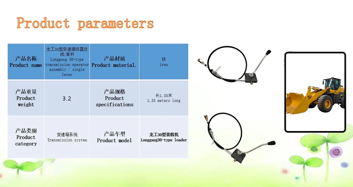 The Longgong 30-type transmission operator assembly features a single lever design for efficient control. Ideal for heavy machinery, it ensures smooth and precise operation, enhancing performance and durability. Perfect for industrial applications.