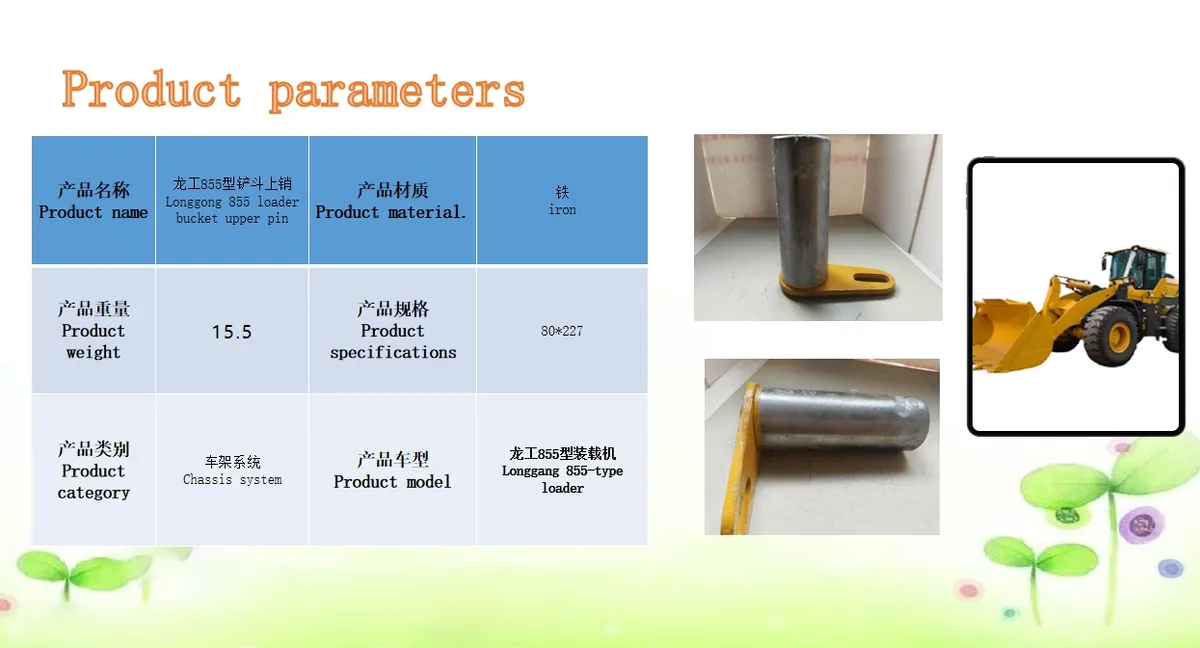 The Longgong 855 loader bucket upper pin is a durable and essential component designed for optimal performance and longevity in heavy-duty applications. Perfect for enhancing your equipment's efficiency and reliability.