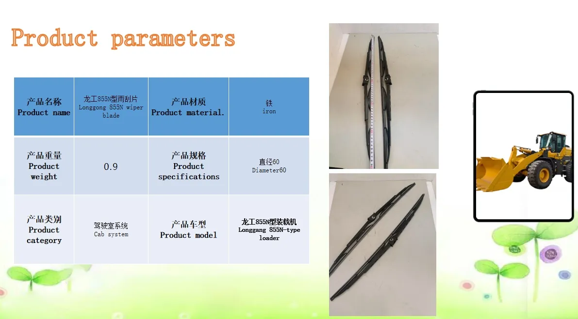 Longgong 855N wiper blade offers exceptional durability and performance for cab systems. Engineered for precise fit, it ensures clear visibility in all weather conditions, enhancing safety and efficiency.