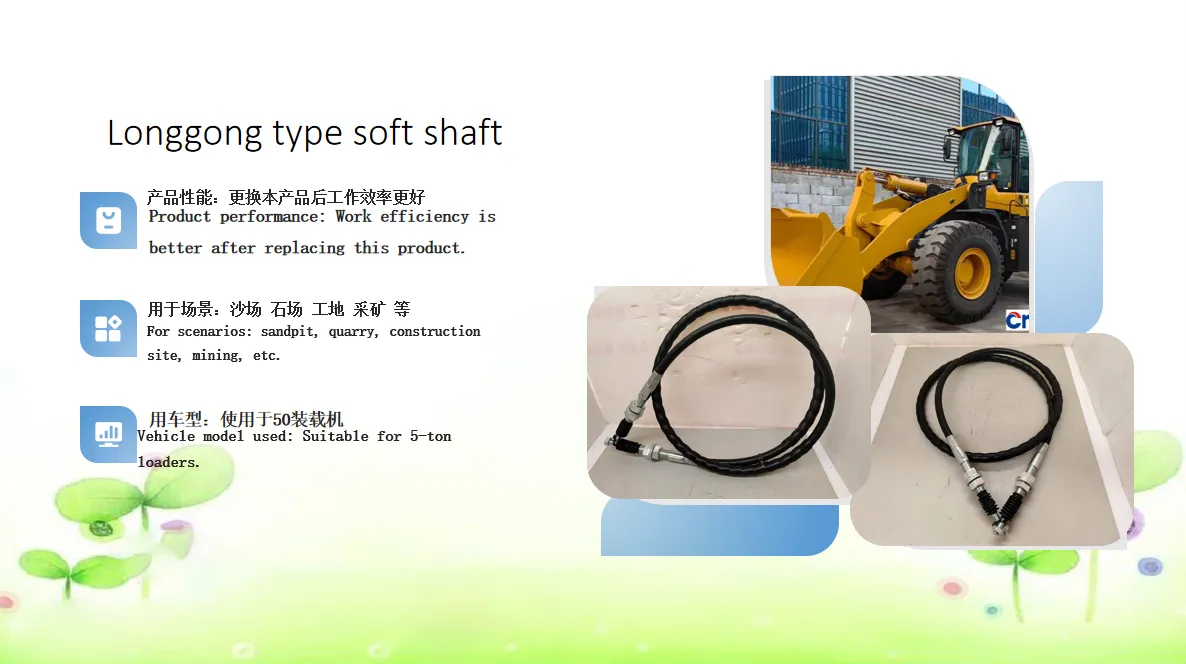 The above link shows the loader Longgong type soft shaft, suitable for some loader models, can also be customized according to the model, or customized according to the picture, can improve the working effect, protect the body, higher efficiency, extended maintenance cycle.