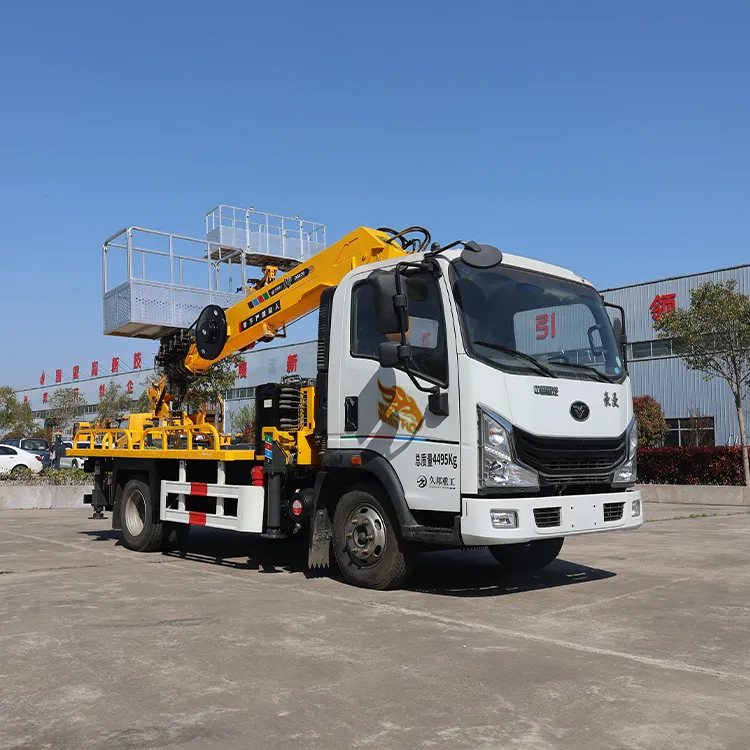 The multi-functional high-altitude vehicle adopts Dongfeng Huashen DV3 Yuchai 180 horsepower, one machine with three uses, the national VI emission operating height of 25 meters, the working platform load of 200kg.