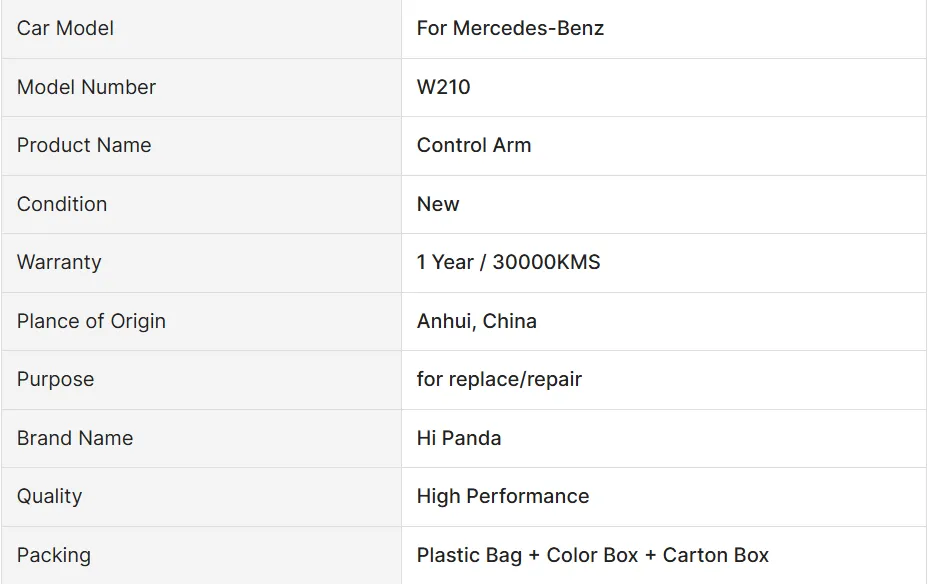 Upgrade your Mercedes-Benz E-Class or S-Class suspension with our high-quality OE 2103303407 2103303507 control arm. Enhance performance and ensure optimal handling for a smoother ride. Perfect fit for W210 models.