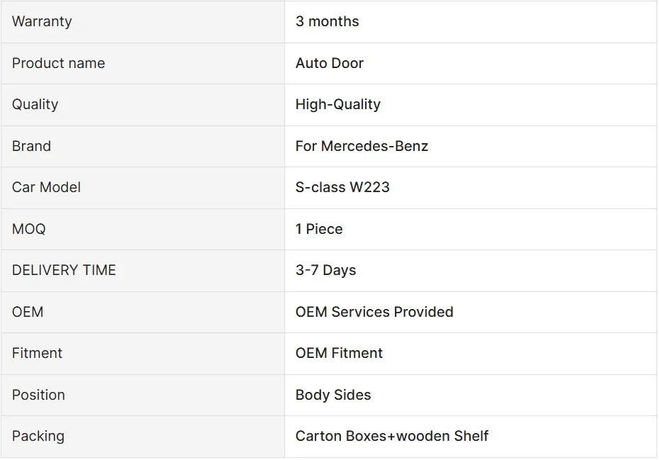 Upgrade your Mercedes Benz S-class W223 with original car doors. Enhance style and safety with front and rear body kit, perfect for 2023 models.