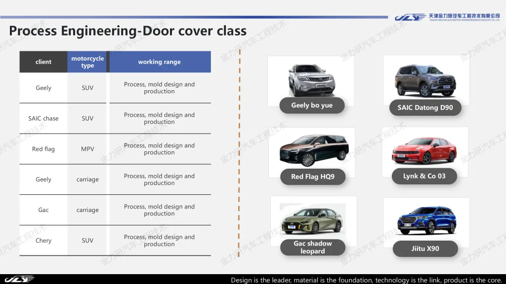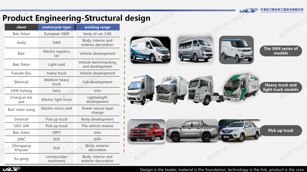 technology with advanced technology center, product design engineering center, SE& size engineering center, process engineering center and manufacturing center as the main body, and has the ability to develop vehicle projects.