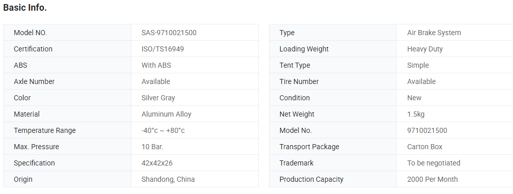 | Main Products | Trailer ABS, Trailer EBS, relay valve | ||
