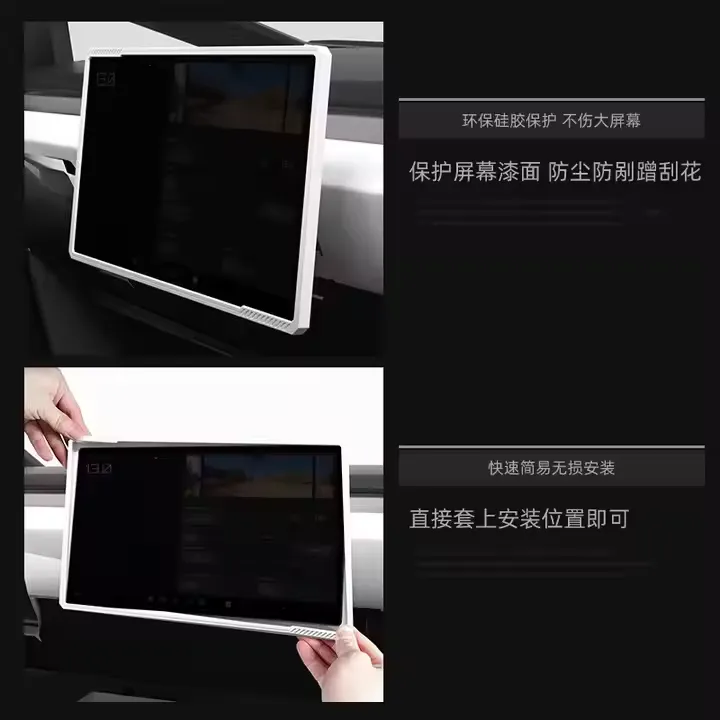 Enhance your Tesla Cybertruck with a silicon frame screen protector. Provides knee protection, is skin-friendly, and fits the center control touchscreen. Essential cover accessory for durability and style.