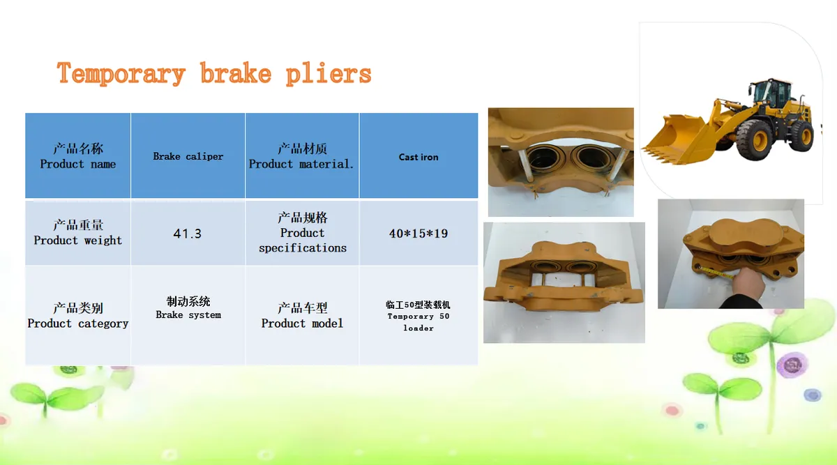 - 主要 有:加力泵 变速箱 变矩器 桥 总成 空滤 机滤 油品 刀板 斗齿 电器件 轮胎 铲斗 销套 液压件 刹车钳 转向系统等